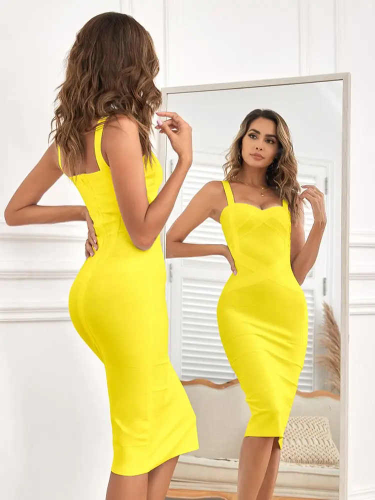 Beaukey Sexy Vintage Yellow Bandage Bodycon Evening Party Dress 2025 – Your Perfect Night-Out Look