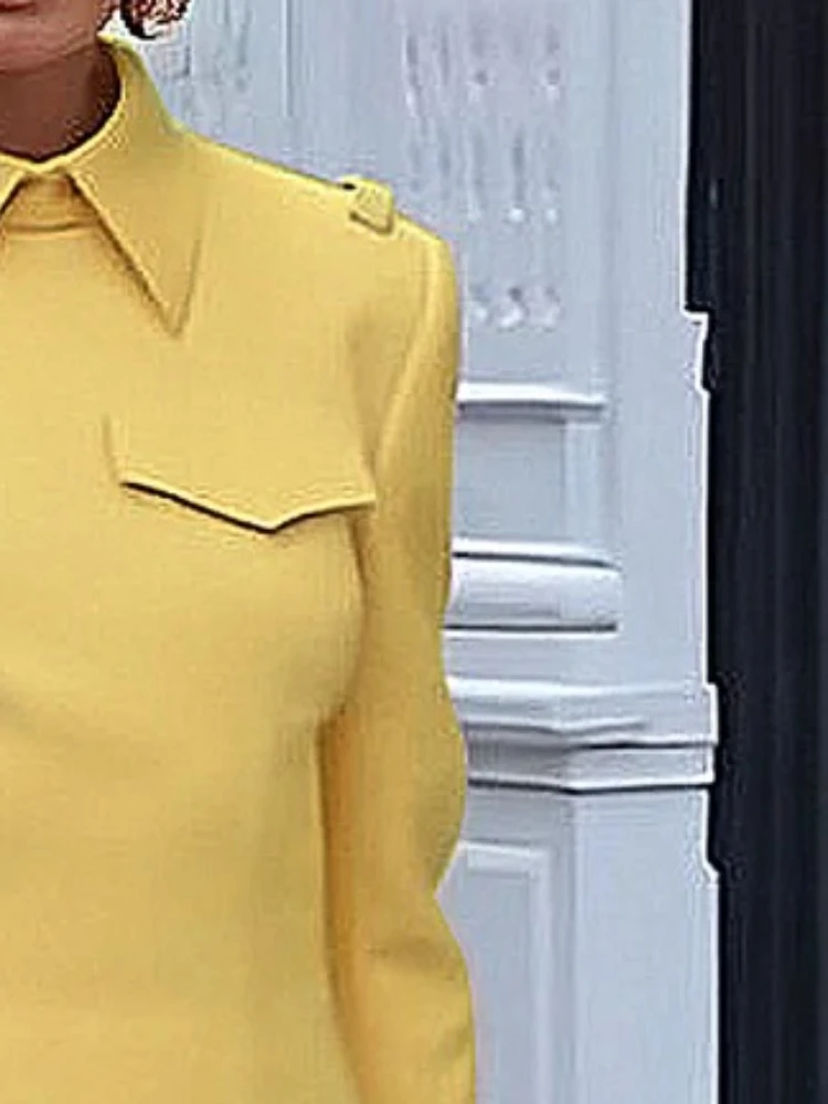 SunLuxe – Elegant Yellow Long Sleeve Split Lapel Casual Evening Party Maxi Dress