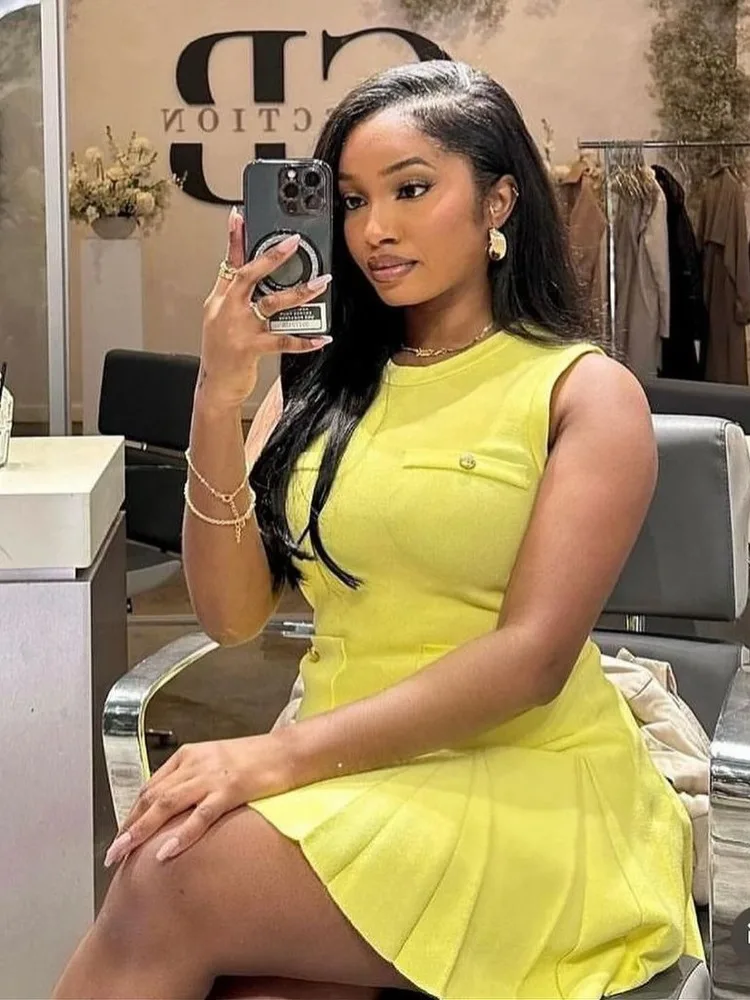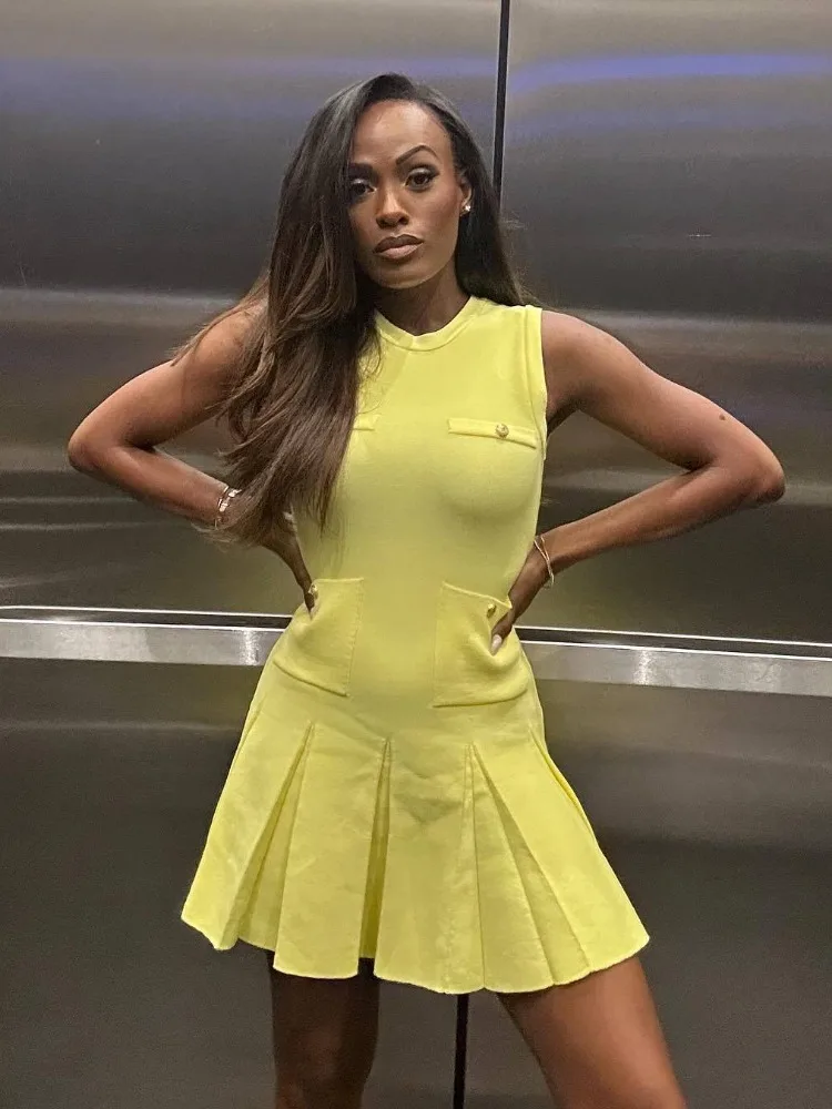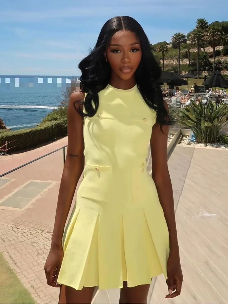 Whether you’re attending a prom, a wedding, or simply want to make a stylish impression at a casual gathering, this Elegant Yellow Pleated Sleeveless Mini Dress With Pockets is the ultimate choice for any woman who values comfort, practicality, and style.