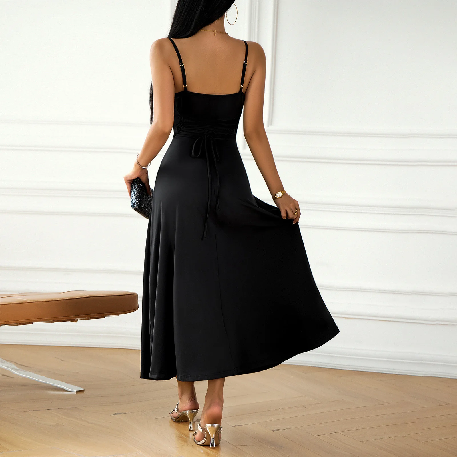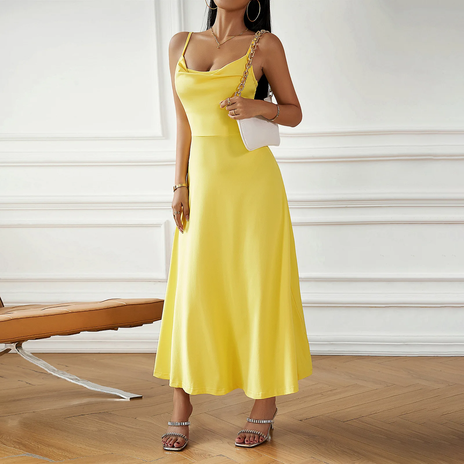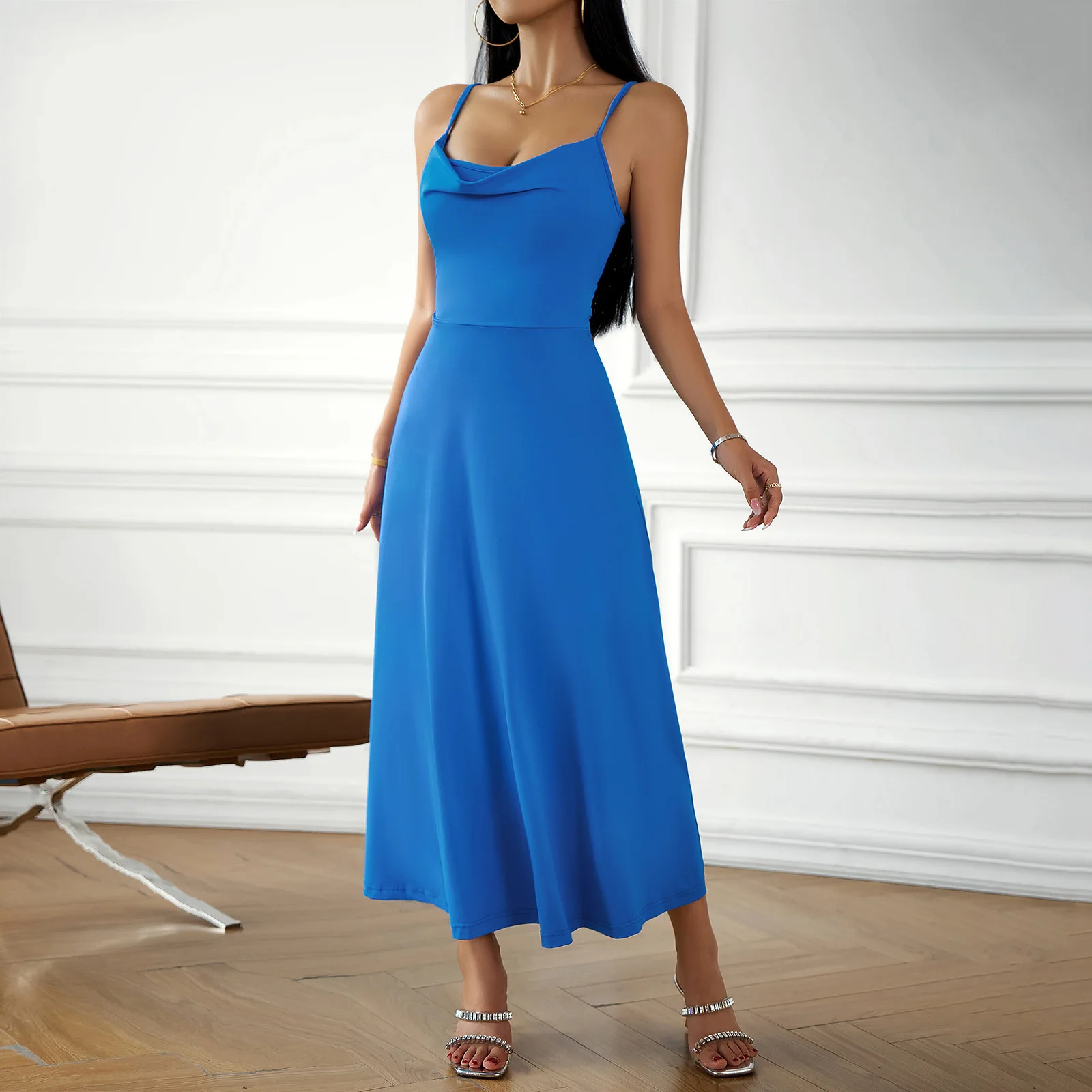 This sleeveless camisole dress is designed to make you feel confident and elegant. The A-line silhouette is flattering for most body types, offering a smooth and chic look. The empire waistline creates a beautiful, elongated shape, making it ideal for both formal events and casual gatherings. Whether you’re attending a glamorous party or a chic office event, this dress offers just the right balance of elegance and allure.