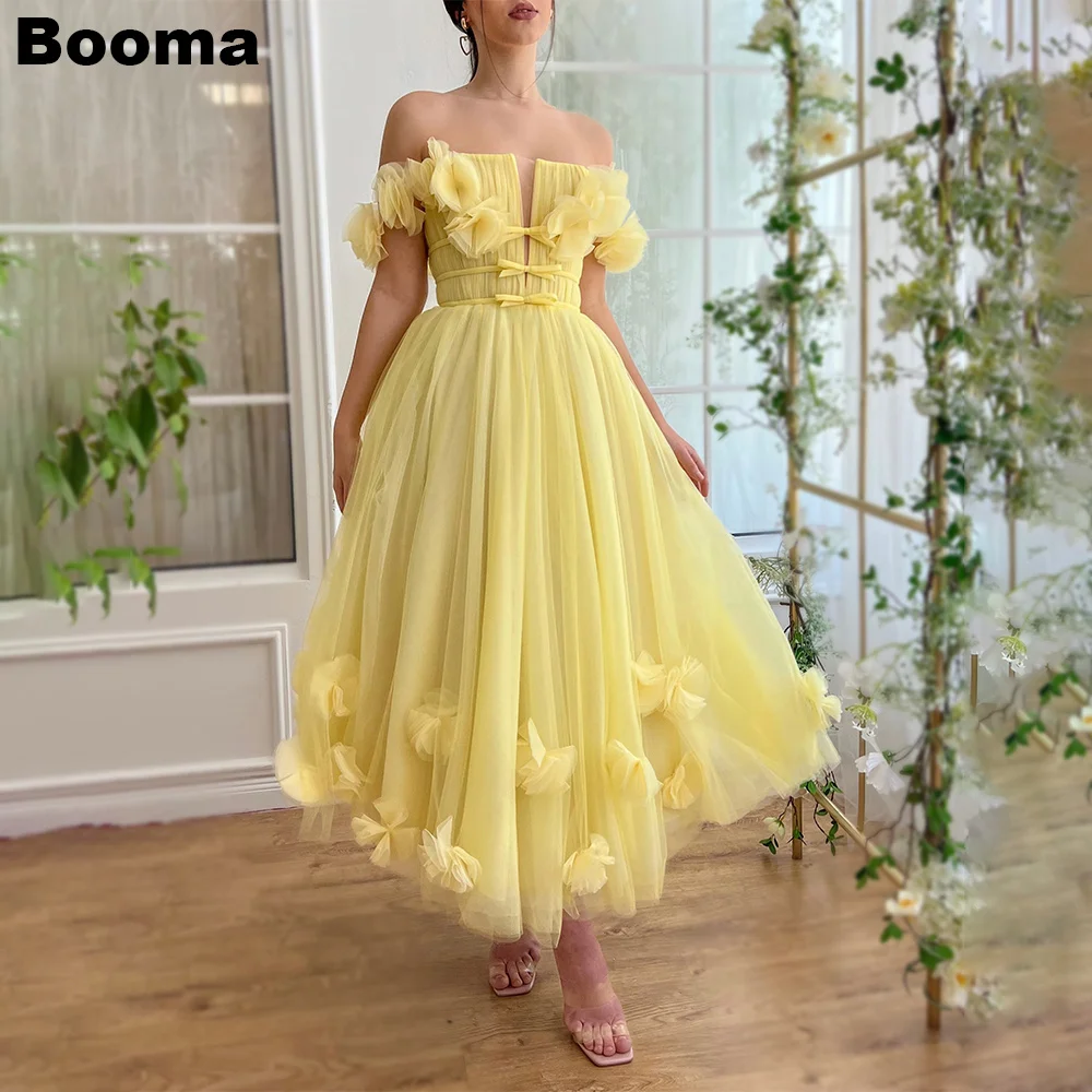 hen it comes to finding the perfect dress for prom or any special occasion, you want something that is elegant, stylish, and comfortable. This yellow prom dresses is designed to give you all that and more. Featuring an A-line silhouette, off-shoulder design, and stunning 3D flower embellishments, this gown ensures you stand out with grace and sophistication. Made from high-quality tulle fabric, it offers a lightweight and breathable feel, perfect for long hours of wear. Whether you’re attending prom, homecoming, or an evening gala, this dress will make you feel confident and beautiful.