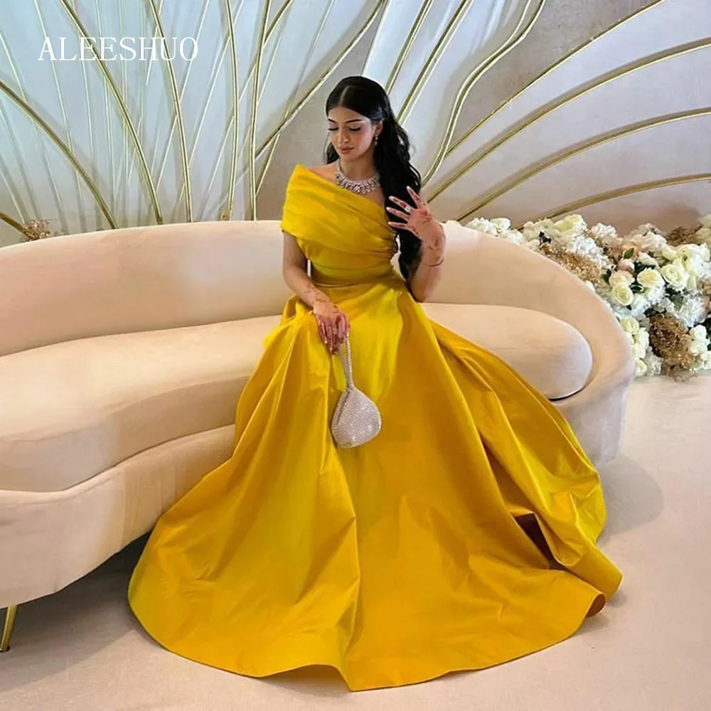 This Yellow Saudi Arabic Satin Evening Dress combines classic style with modern elegance. Featuring a one-shoulder neckline and an A-line silhouette, this dress is designed to flatter and enhance your figure. The floor-length design and luxurious satin fabric make it an excellent choice for any special occasion, including prom or other formal events. Available for customization, you can ensure a perfect fit that will make you feel confident and beautiful on your big night. With its sleek, sleeveless design, this dress will undoubtedly turn heads at your next event.