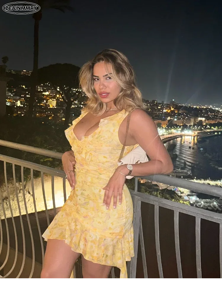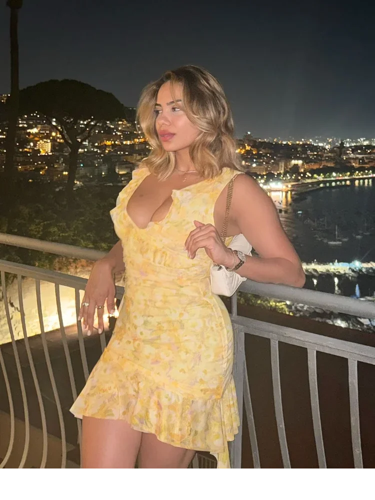 Be the first to review “Yellow Ruffle Pleated Mini Dress Sleeveless Backless Holiday Party Wear”